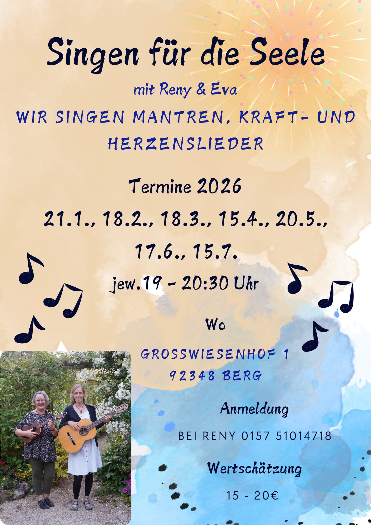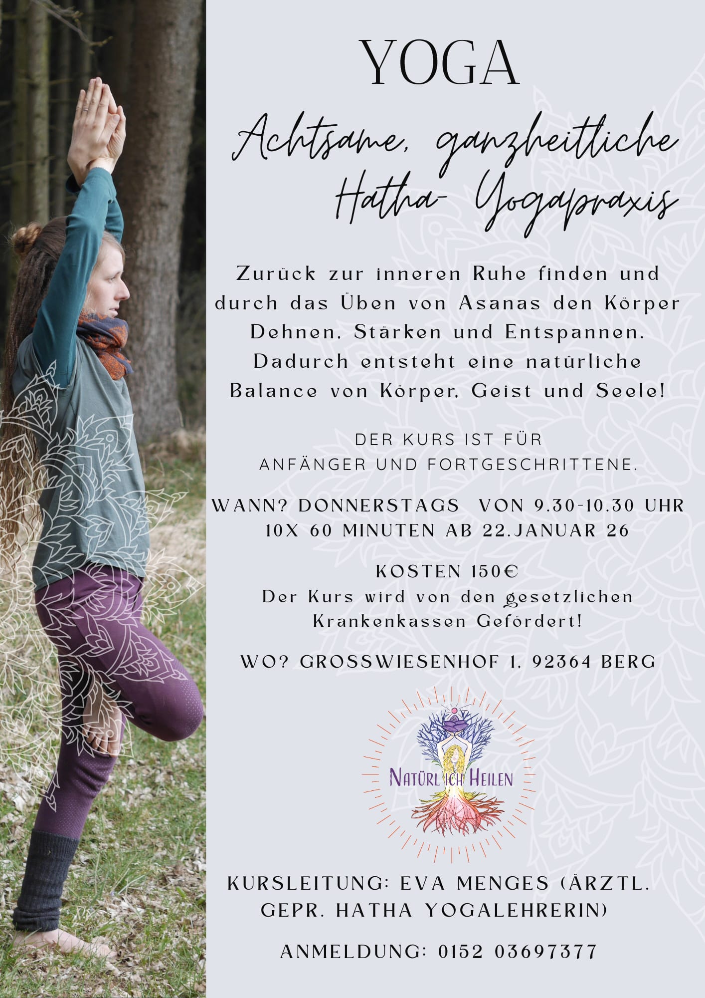Yoga, Qigong, Meditationen, meditativer Tanz, Line Dance, Achtsamkeitskurse, Bastel- und Dekokurse, gemeinsames Singen, Vorträge, u.v.m.